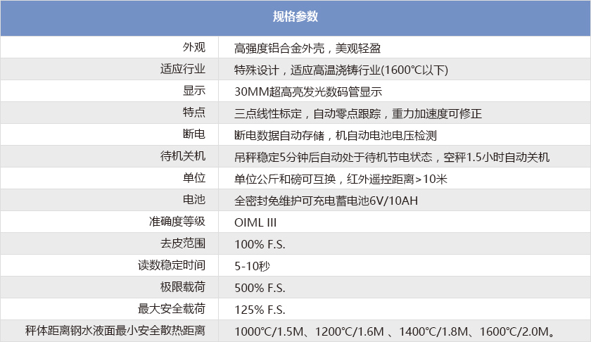 耐高溫吊秤采用獨特熱態(tài)吊秤專用傳感器,以保證在高溫環(huán)境下能獲得較好的準確性